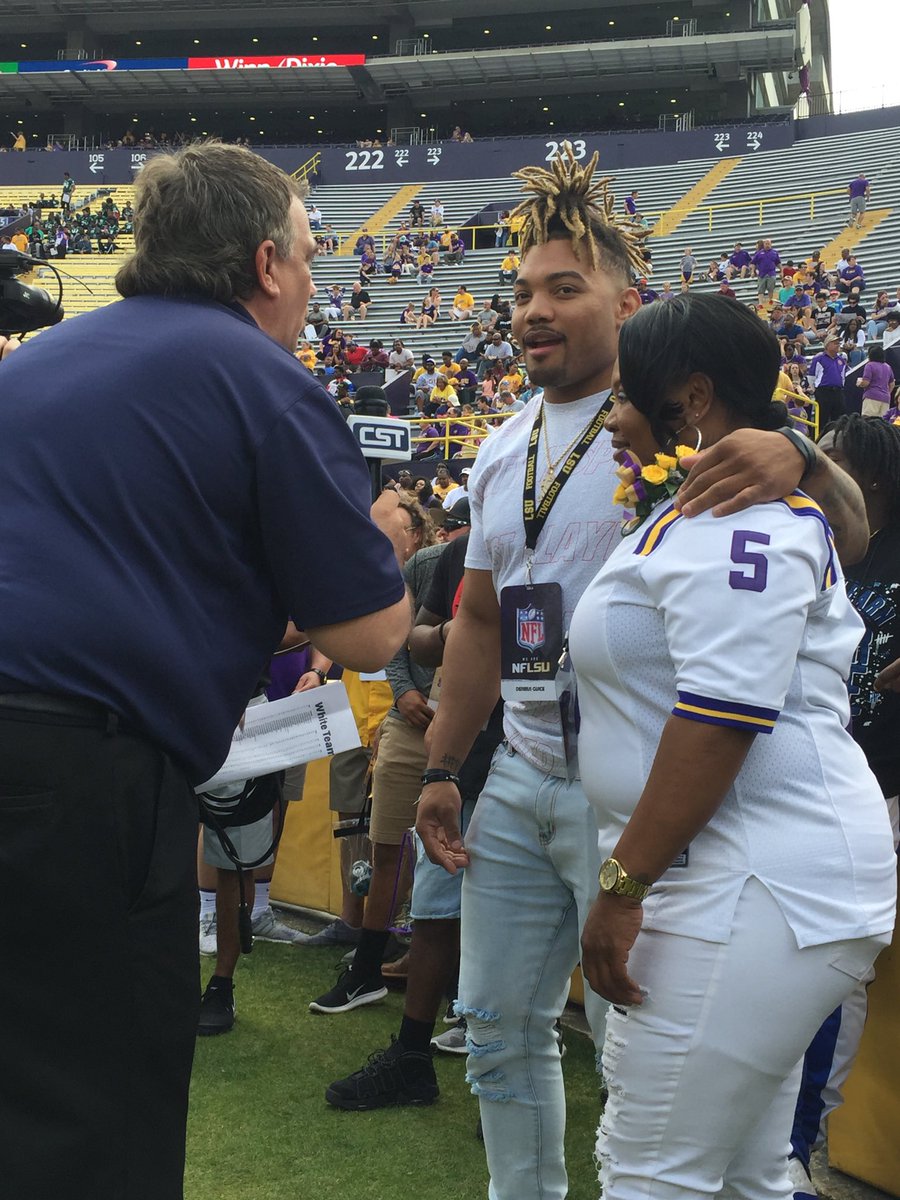1 2018 against Notre Dame. Apr 07 2021 LSU coach Ed Orgeron maintained in a statement provided to state lawmakers Tuesday that he does not recall speaking with an elderly female security worker who said then-Tigers running back Derrius Guice made offensive sexual advances toward her during an event she was working in 2017. Gloria Scott said she was harassed by former LSU running back Derrius Guice while working security at the Mercedes-Benz Superdome in 2017.